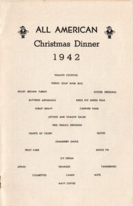 Today, this Christmas 1942 menu connects us to that moment in history, when the Hotel Ponce de Leon became not just a training center, but a place where holiday traditions were adapted and preserved under extraordinary circumstances. As an artifact, it reflects resilience, community, and the enduring importance of remembrance during the holidays.